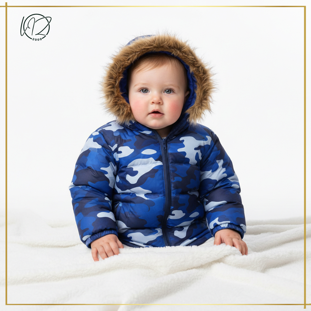 Keep your little explorer warm and stylish this winter with our Liz 2000 Camo Puffer Jacket.