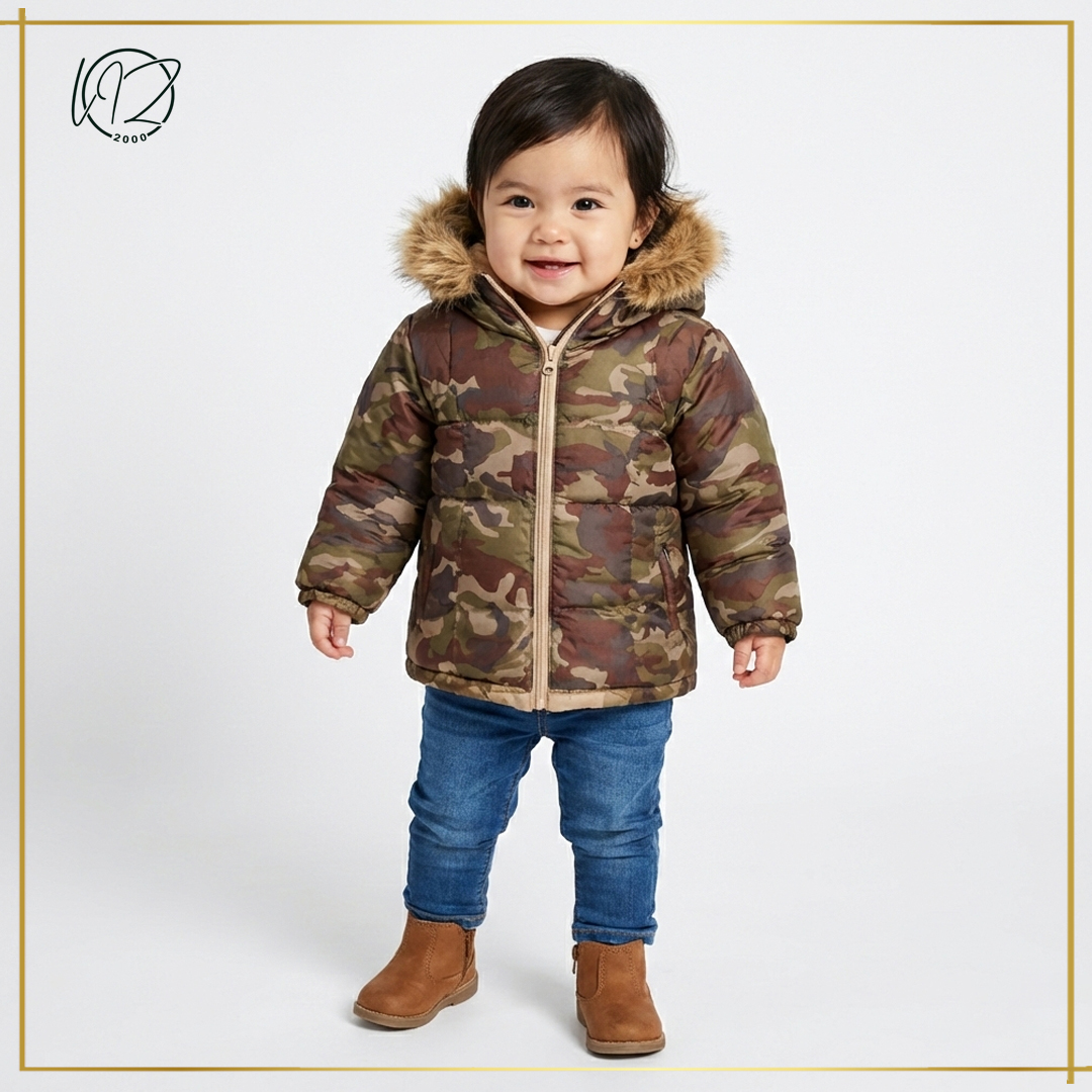 Keep your little explorer warm and stylish this winter with our Liz 2000 Camo Puffer Jacket.