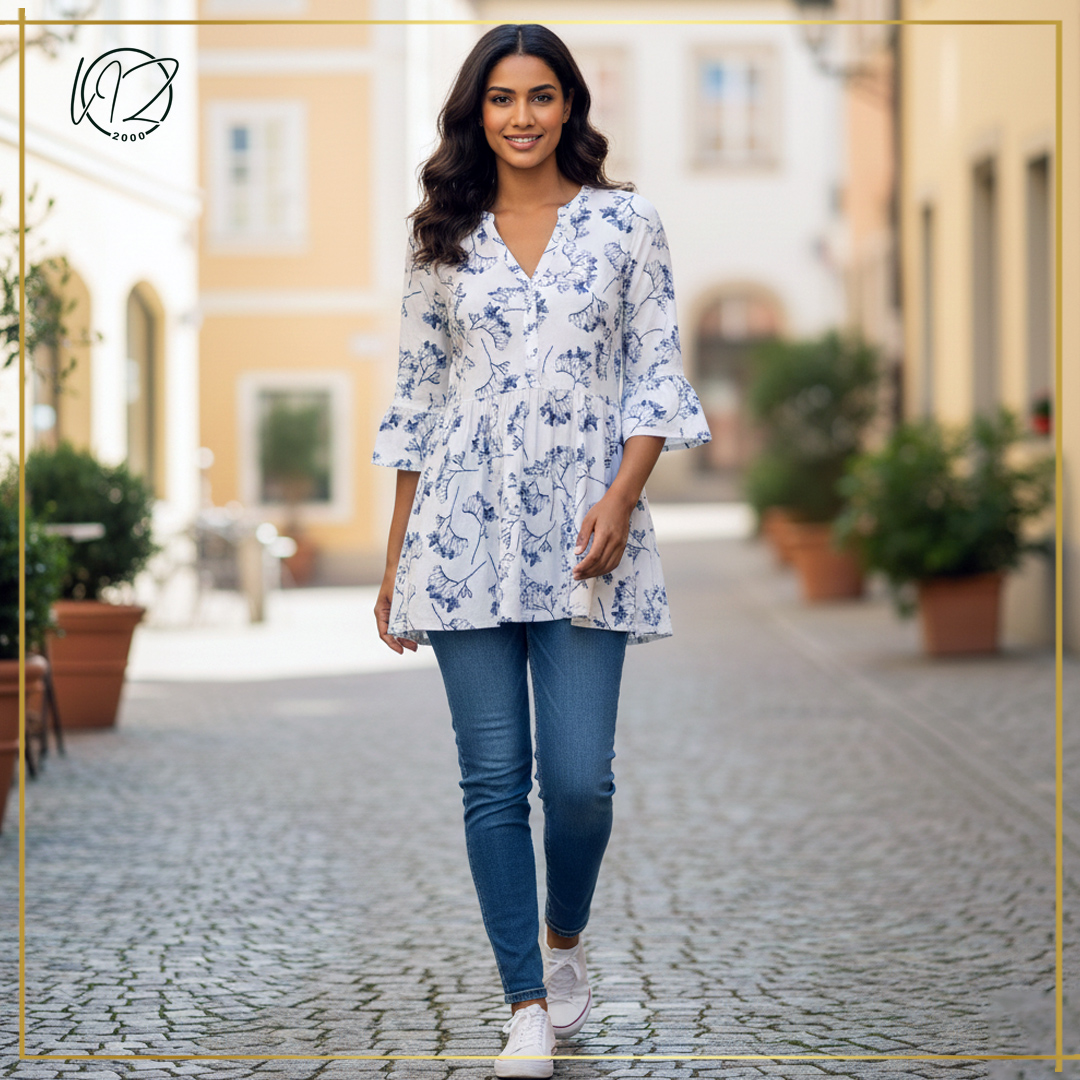 Featuring a classic neckline and versatile design, these tops can be easily paired with jeans, trousers, skirts, or leggings. From casual basics to trendy statement styles, our ladies tops and T-shirts are ideal for creating chic, confident looks for every season.