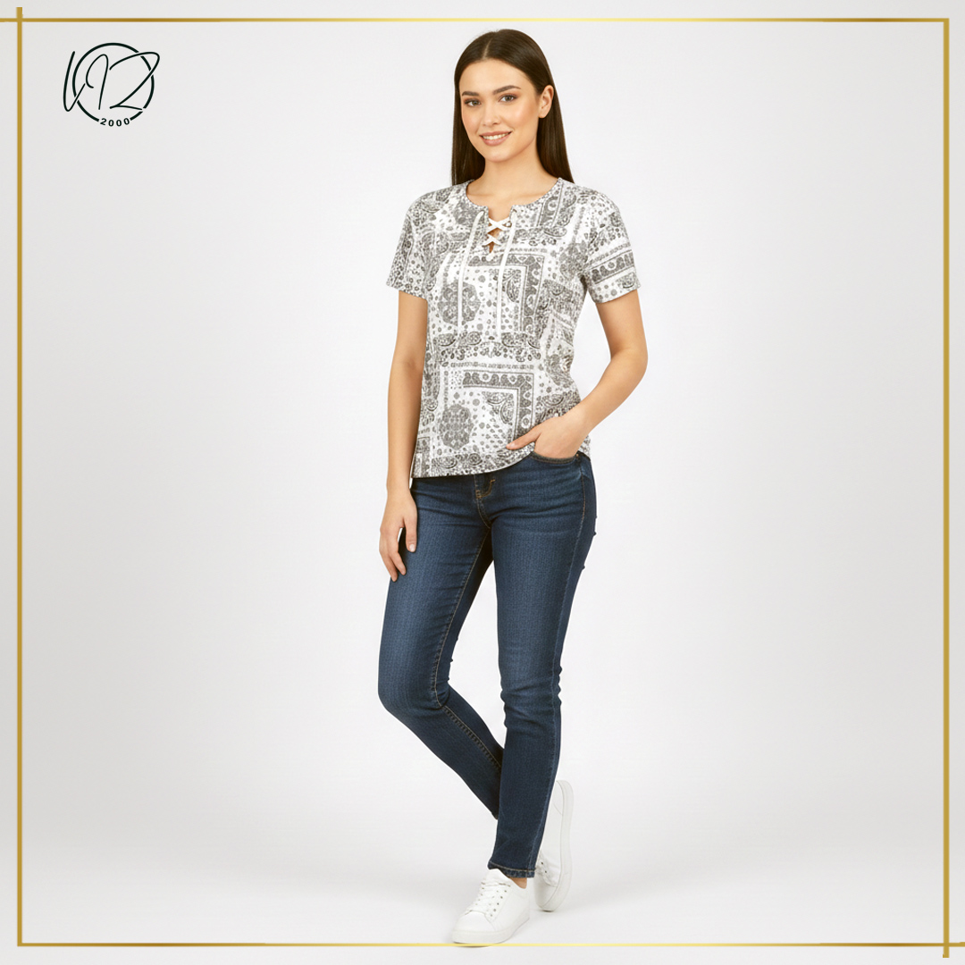 Featuring a classic neckline and versatile design, these tops can be easily paired with jeans, trousers, skirts, or leggings. From casual basics to trendy statement styles, our ladies tops and T-shirts are ideal for creating chic, confident looks for every season.